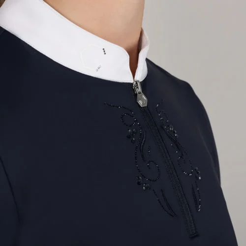 Hermitage Diamante peene lõikega pluus järgib kehajoont, rõhutades figuuri ja andes professionaalse ning korrapärase välimuse isegi kõrge intensiivsusega võistlusolukorras.